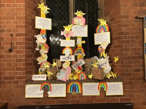 Every class has a thinking table where children can go and reflect during the school day. Creative prayer activities that relate to the Collective Worship theme for the week are added to the thinking table where children are prompted to think more deeply about how the ideas discussed impact them and the people around them.