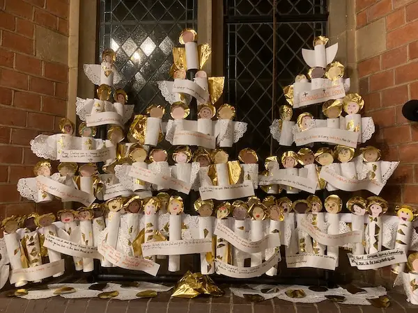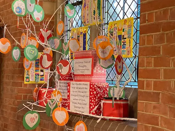 We signpost events at the churches, are involved with the Beech Hill coffee morning, celebrate Christmas in St Michael’s church and contribute to the Christmas community displays there. This year the theme was angels and all the children were involved in creating a display of God’s messenger angels sharing messages that they thought were important.