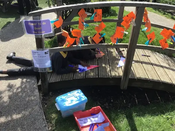 As part of our annual cycle of Collective Worship we host a prayer space in our Spiritual Garden. Members of local churches join us in preparing, setting up and staffing the space where children are given the opportunity to reflect on matters inwardly about themselves, looking upwards to God and looking outwards to other people. The activities encourage children to reflect in a creative and practical way, with an invitation to pray in the end. Parents and other members of the school community are invited to visit the prayer space at the end of the week.