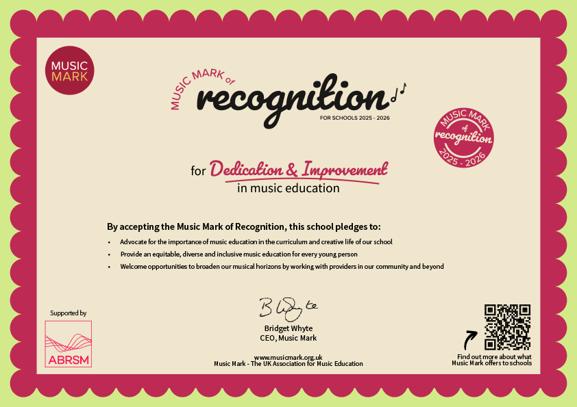 This year Berkshire Maestros have awarded us with the recognition Music Mark Award, in recognition of the work we have put, and continue to put, into our music curriculum. We are delighted to have received it and to continue encouraging our children in their musical endeavours.